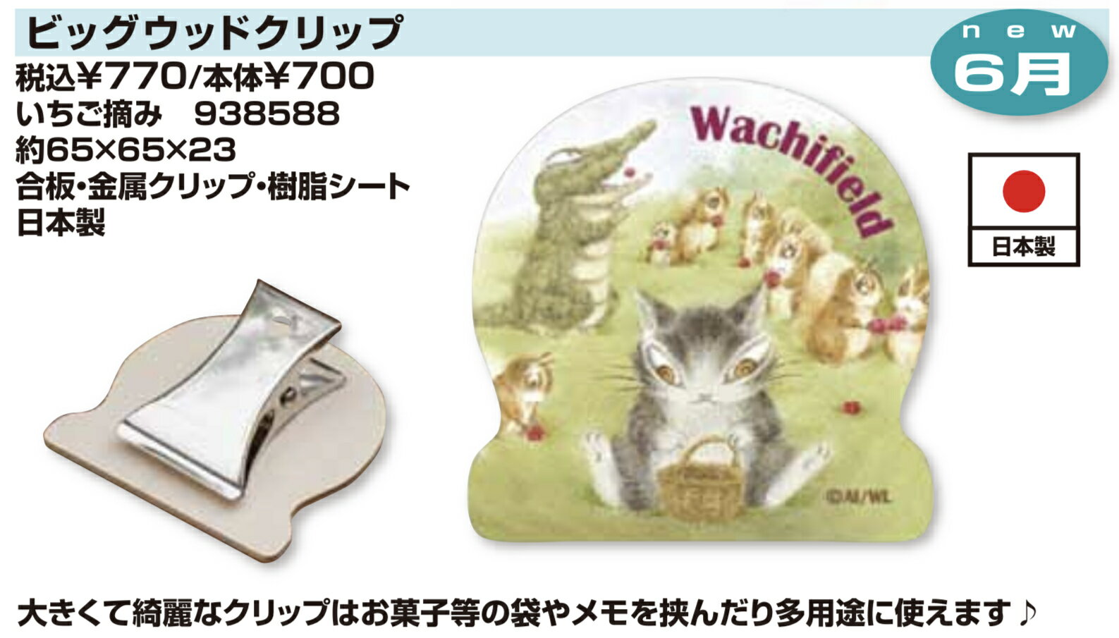 わちふぃーるど ビッグウッドクリップ いちご摘み [日本製] | 猫のダヤン キャラクターグッズ ステーショナリー 文具 クリップ