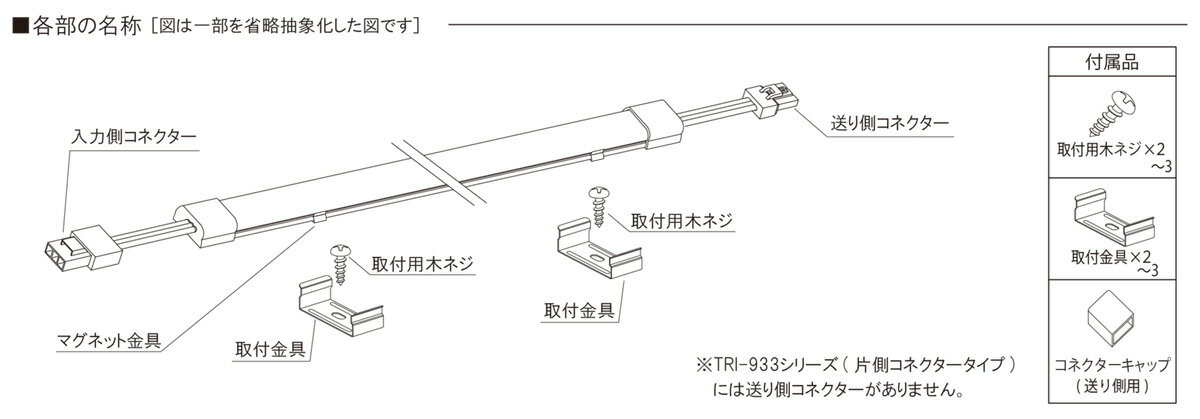 TES LIGHTING LED棚下灯 TRI-932シリーズ 600mmタイプ 両側コネクタ マグネット取付 本体寸法520mm 昼白色 5700K TRI93206057