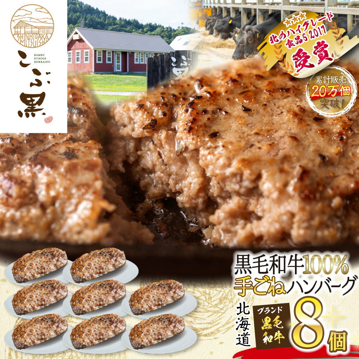 【ふるさと納税】 北海道産 ハンバーグ 8個 黒毛和牛 和牛 ブランド牛 こぶ黒 ハンバーグステーキ BBQ バーベキュー 牛肉 ブランド 牛 肉 ビーフ お惣菜 惣菜 冷凍 北海道 新ひだか町